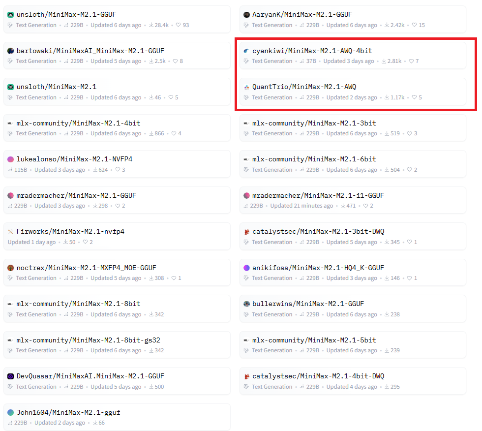 MiniMax-M2.1 quantization list