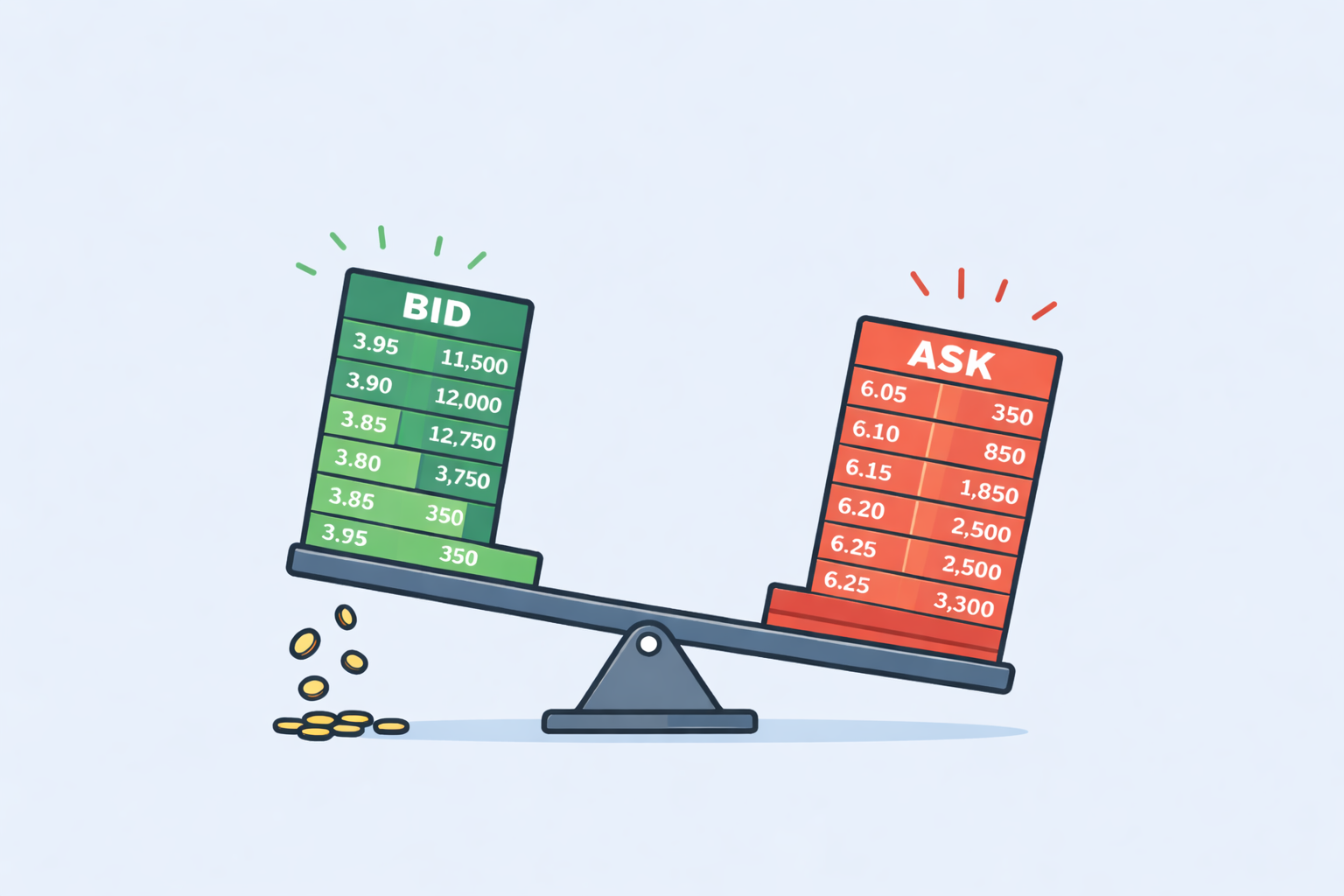 \[P_{\text{micro}} = \frac{q^B \cdot P^A + q^A \cdot P^B}{q^B + q^A}\]매수 물량 $q^B$가 많으면 가격이 $P^A$ 쪽으로 끌려가고, 매도 물량 $q^A$가 많으면 $P^B$ 쪽으로 끌려갑니다.